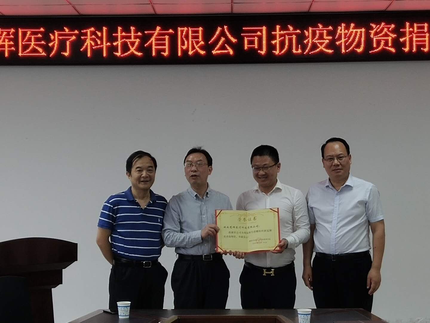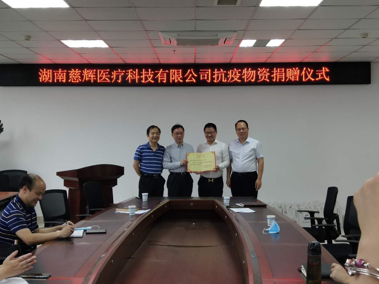 2020年5月14日,湖南慈辉医疗科技有限公司江勇辉董事长向我院捐赠100套防控新冠肺炎抗消毒物资。何清湖副校长参加捐赠仪式并颁发捐赠证书,这批物资将为我院师生复学后的防疫工作提供保障。