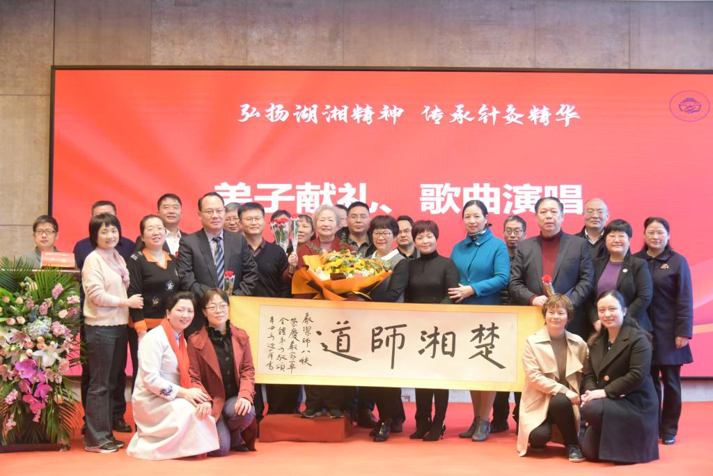 陈新宇院长表示严洁教授是我省德高望重的针灸专家,是湖湘针灸流派的掌门人,同时也是湖南中医药大学针灸学科的奠基者和领航者。她近60年来一直坚持走医教研结合的道路,在针灸科研上独树一帜;在经络脏腑相关的针灸研究领域硕果累累;在针灸教学上甘为人梯,不遗余力,培养了大批栋梁之才,桃李芬芳满天下。
