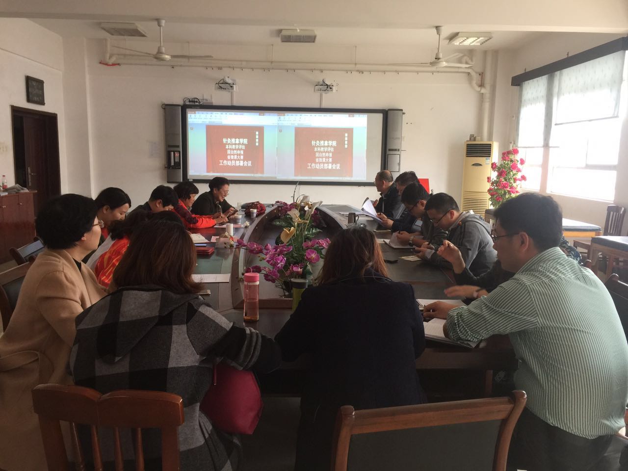 12:00-14:00,针灸推拿学院在学院会议室召开了“本科教学审核评估”、“2017年国自然申报”和“湖南省微课大赛”等“三大”教学和科研工作动员部署会议。会议由学院副院长顾星主持,博士生导师、各学科带头人、各教研室主任、副主任、秘书、院办公室和科教科工作人员参加。