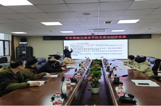 10月15日上午我院党委书记李继红在三教10楼会议室为学院党员干部讲授——深入学习党的二十届三中全会精神党课,学院党委副书记刘余主持,学院领导和各支部书记参加会议。