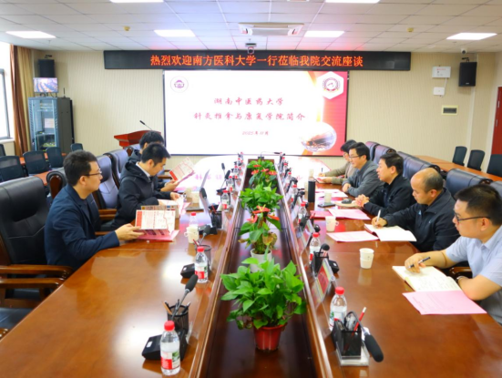 2025年11月13日下午,南方医科大学康复医学院副院长樊涛一行到访我院,在济世楼十楼会议室举行交流座谈会,共同讨论康复医学融合发展新路径。座谈会由我院副院长刘密主持,双方学院相关负责人及教师代表参会。