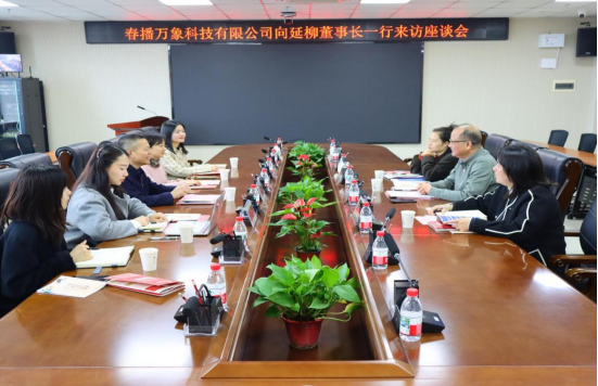 2026年3月18日下午,春播万象科技有限公司董事长向延柳一行到访我院,双方围绕校企合作、人才培养、技术转化等举行专题交流座谈会。会议由学院党委书记李继红主持,学院党委副书记黄容、学生管理科科长贺圆圆参会交流。