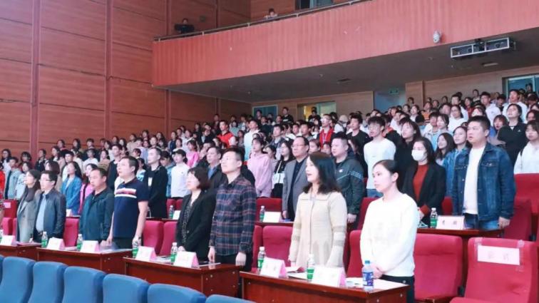 全体师生起立齐唱中华人民共和国国歌和湖南中医药大学校歌