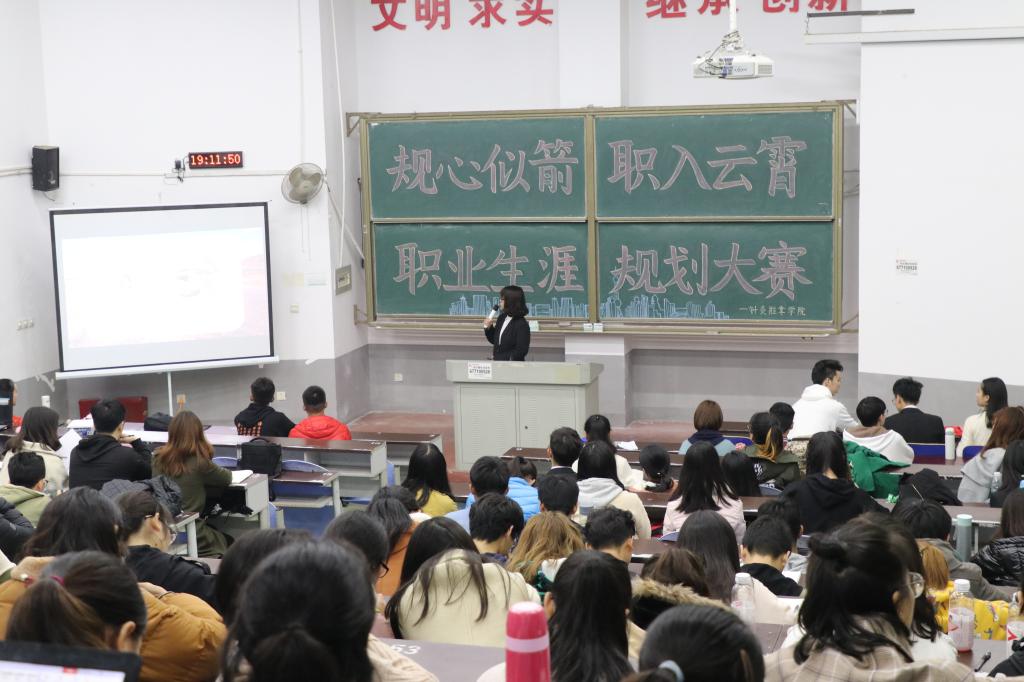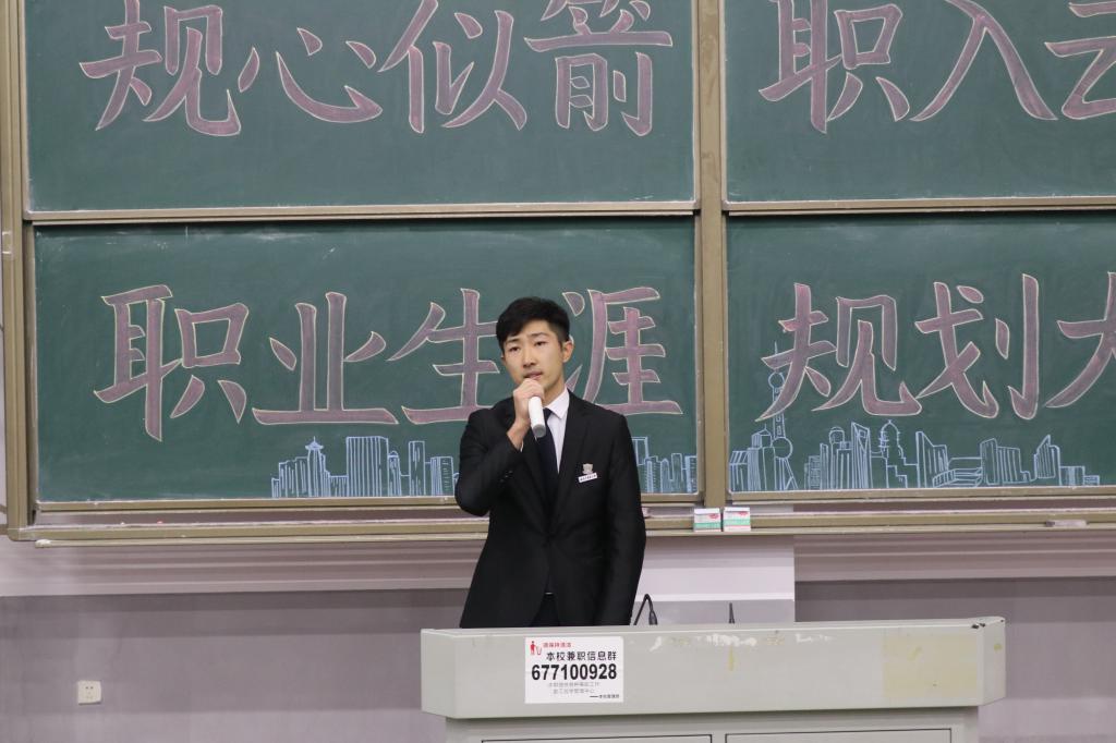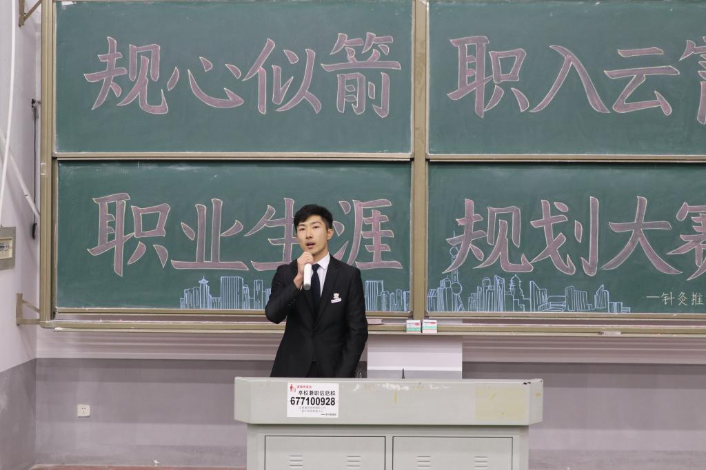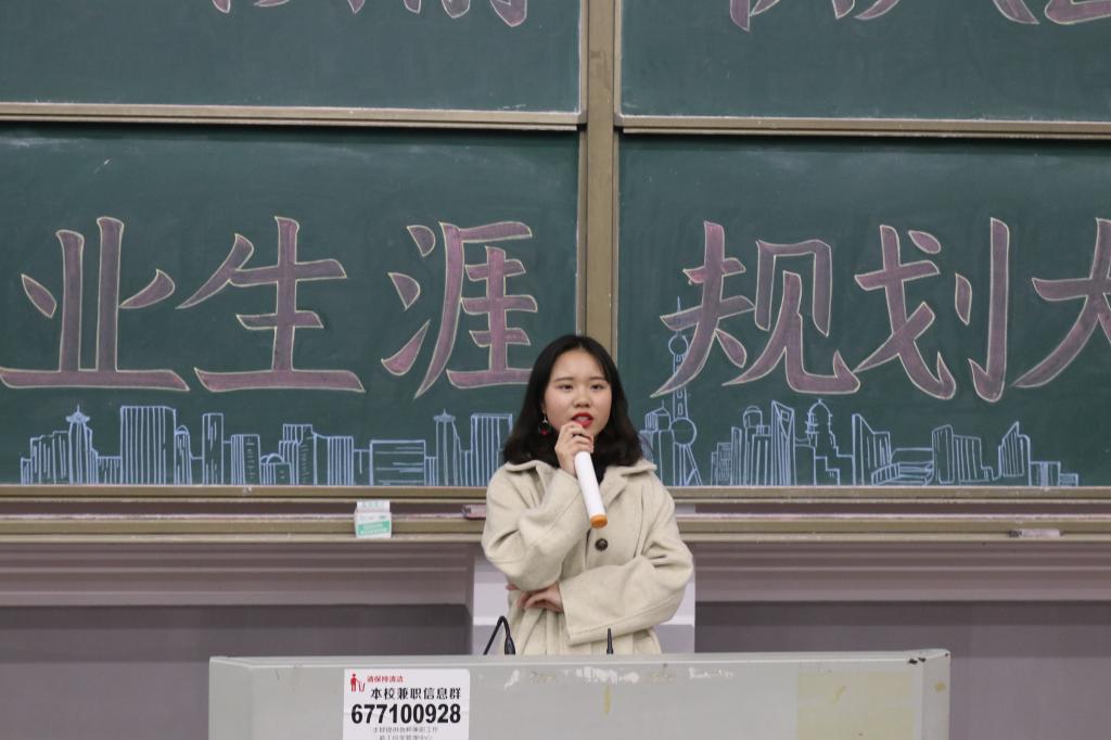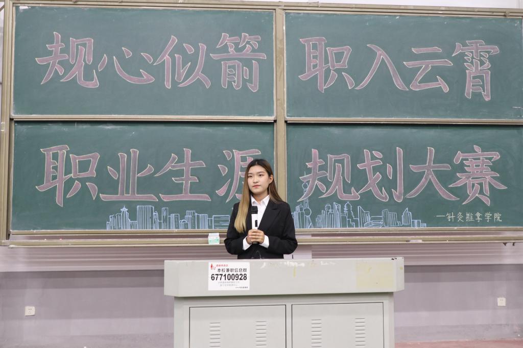 本次活动主题为规心似箭,职入云霄。待主持人宣布活动正式开始后,赛友们便依次上台进行对自身职业规划的激情演讲。每位赛手演讲的内容大致可分为三个部分:一、自我的剖析。通过多种专业的分析法剖析自身性格兴趣方面的优点与不足。二、自我专业的认识。赛友们通过了解自身的专业的意义及职业环境的因素,初步制定自己职业的阶段目标。三、通过自身目标制定整理其职业规划方案。