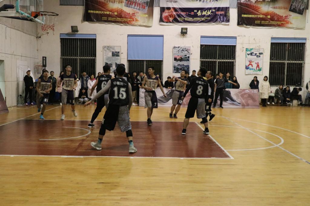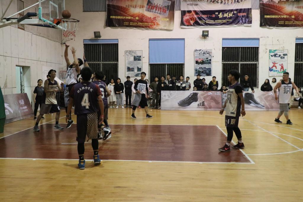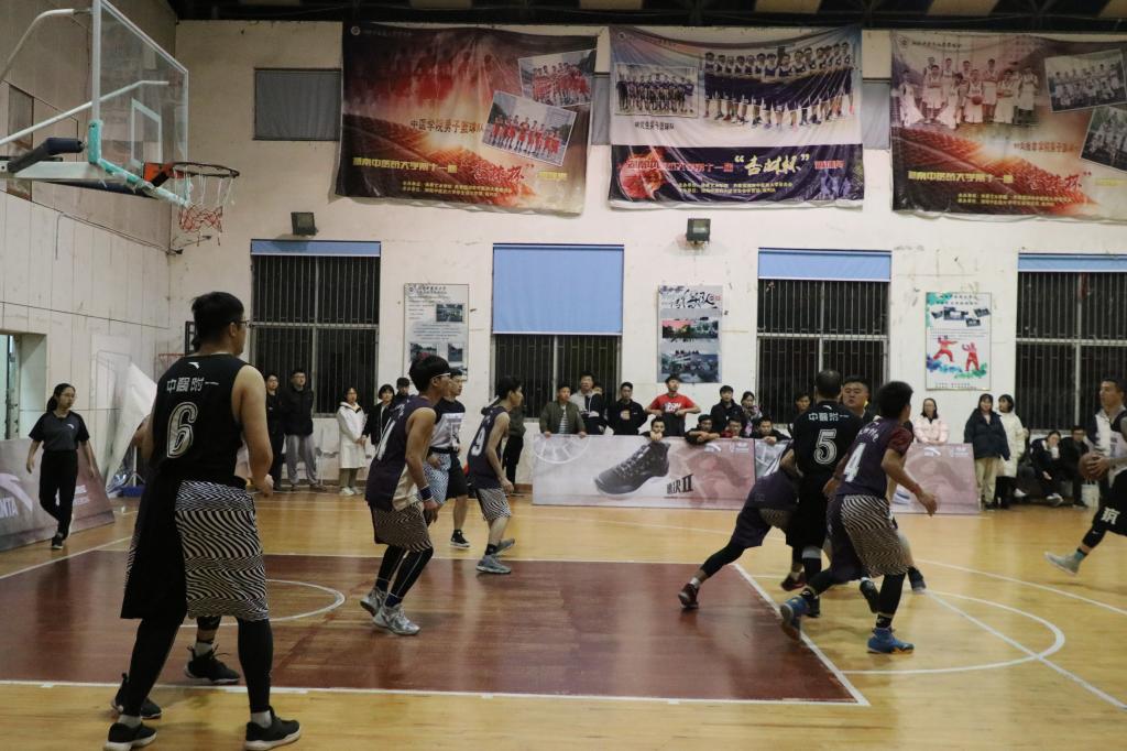 2018年11月19日18:50,湖南中医药大学针灸推拿学院男篮在体育馆与中医附一男篮进行最后一场比赛。