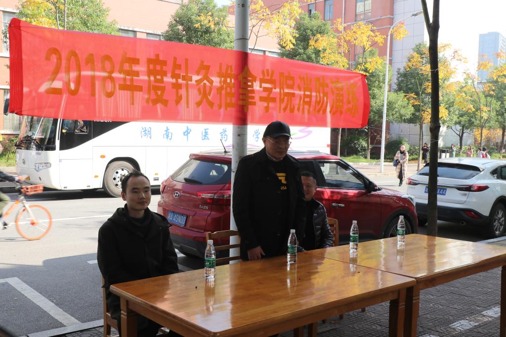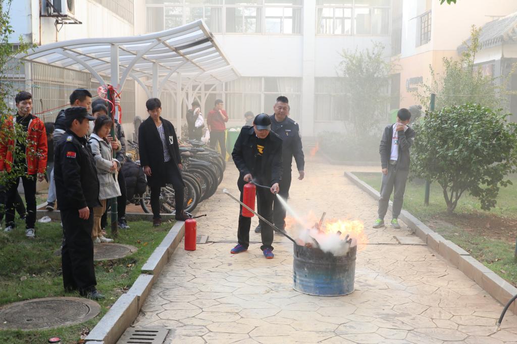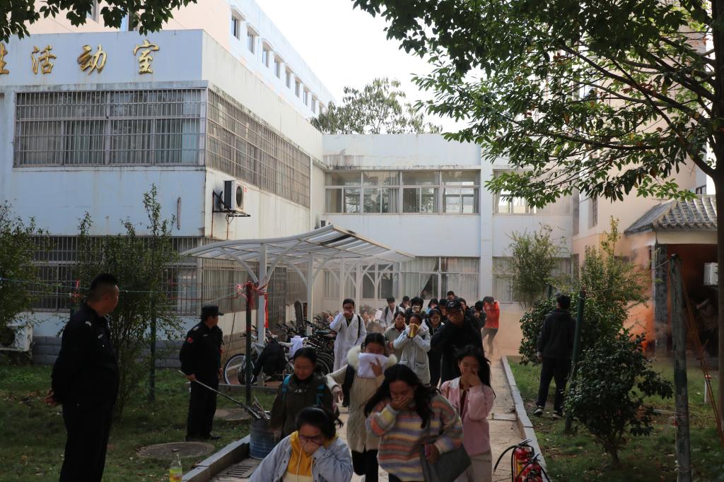 最后便在湖南中医药大学一栋寝室楼下对学生进行火灾安全演练。同学们积极配合,秩序井然,演习在校卫的帮助下顺利完成。