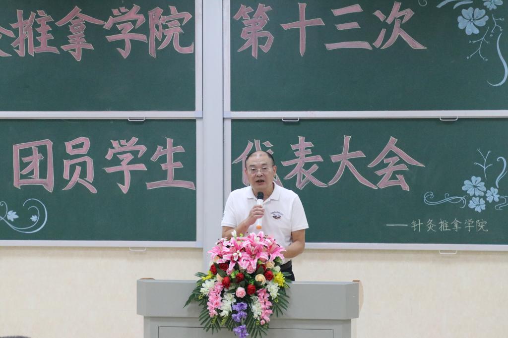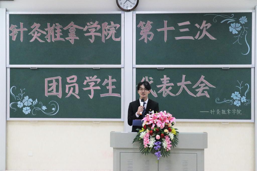 2018年9月13日晚7点,湖南中医药大学针灸推拿学院第十三次团员学生代表大会于我校含浦校区3216教室隆重召开。出席本次大会的有共青团湖南中医药大学委员会蒋俊副书记、针灸推拿学院顾星副院长、针灸推拿学院学生科老师们以及校组织的负责人和各院的主席团。