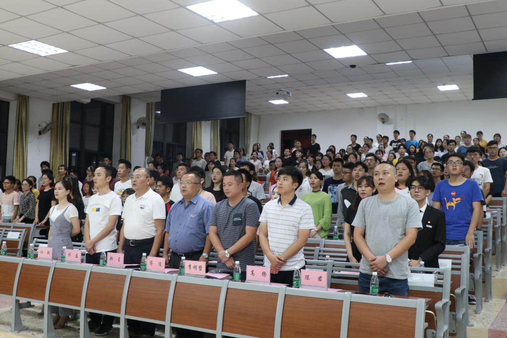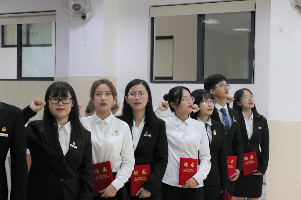 最后,第十二届分团委副书记李沛丰同学带领新一届分团委学生会成员进行宣誓。最后,全体起立,奏唱中国共产主义青年团团歌,主持人宣布大会结束。