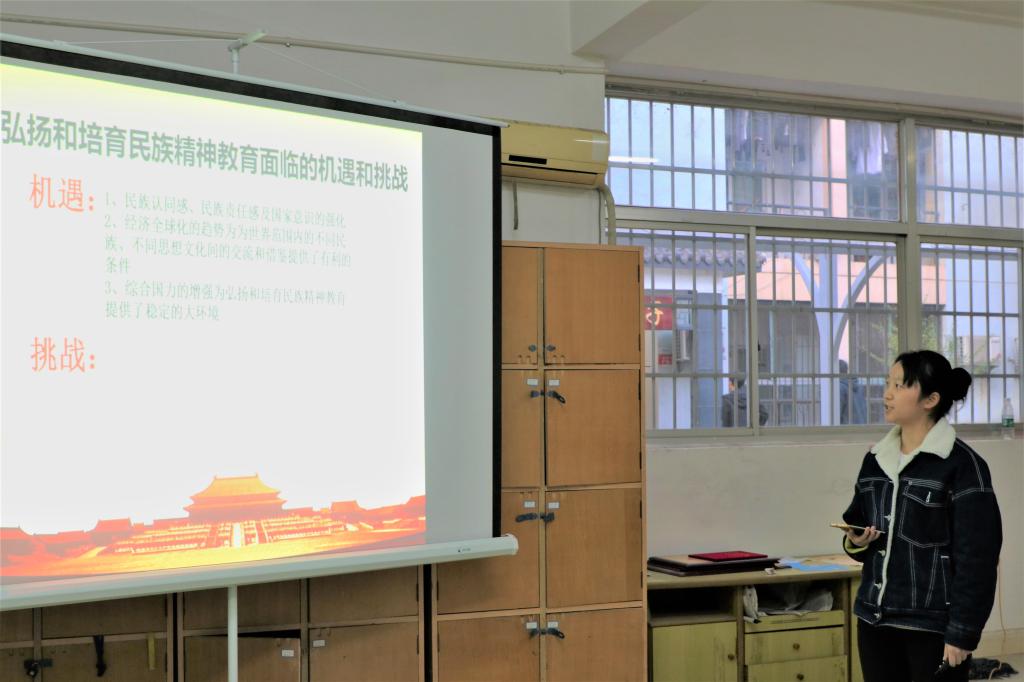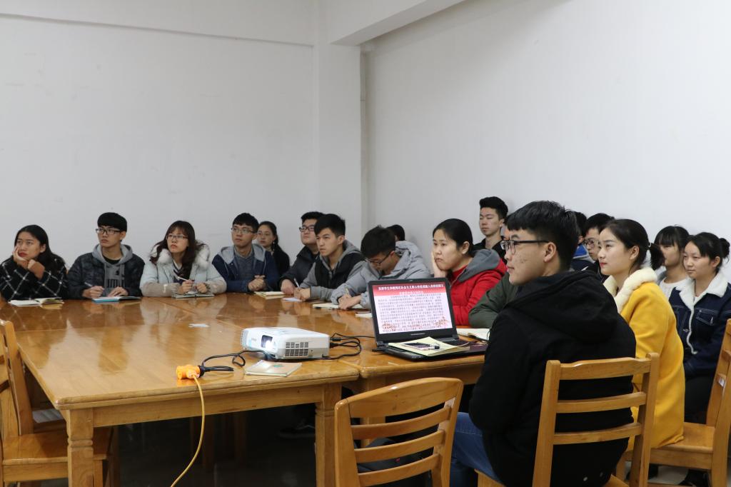 2017年11月26日下午5点到7点,“聚合理想,践行青春”团干部讲团课系列活动第二期在针灸推拿学院学生活动室举行,高金凤、孙慧、徐雅钰三位团干部以“继承爱国主义弘扬民族精神”为主题,进行团课讲解。