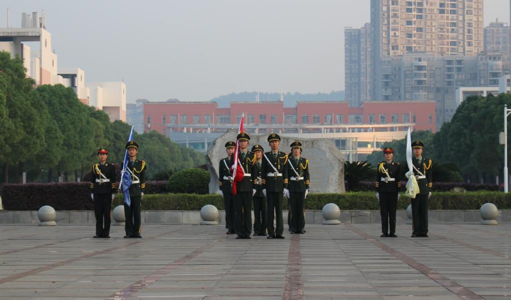 2017年9月18日早晨七点,湖南中医药大学在含浦校区南大门广场举行了以“铭记历史,砥砺前行”为主题的升旗仪式。湖南中医药大学保卫处处长姚旭东、校团委书记焦珞珈、校学生会主席团成员以及2017级全体新生参加了此次升旗仪式。