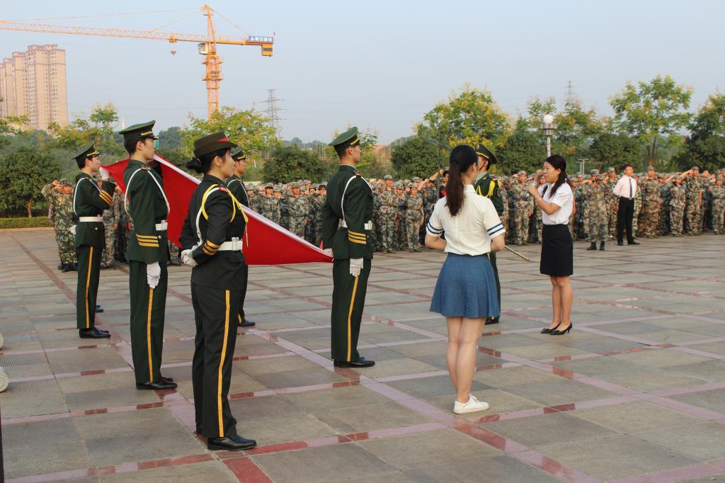 在宣布升旗仪式开始后,标兵就位,接着,国旗仪仗队迈着庄严而整齐的步伐走到旗台下。全体人员向冉冉升起的国旗行注目礼。接着,焦珞珈书记带领全体同学重温入团誓词,姚旭东处长发表致辞,随后,学生代表校团委副书记贺咏梅进行国旗下讲话。最后,全体新生进行了集体签名活动。礼毕,由教官带领各班新生有序退场。至此,升旗仪式圆满结束。