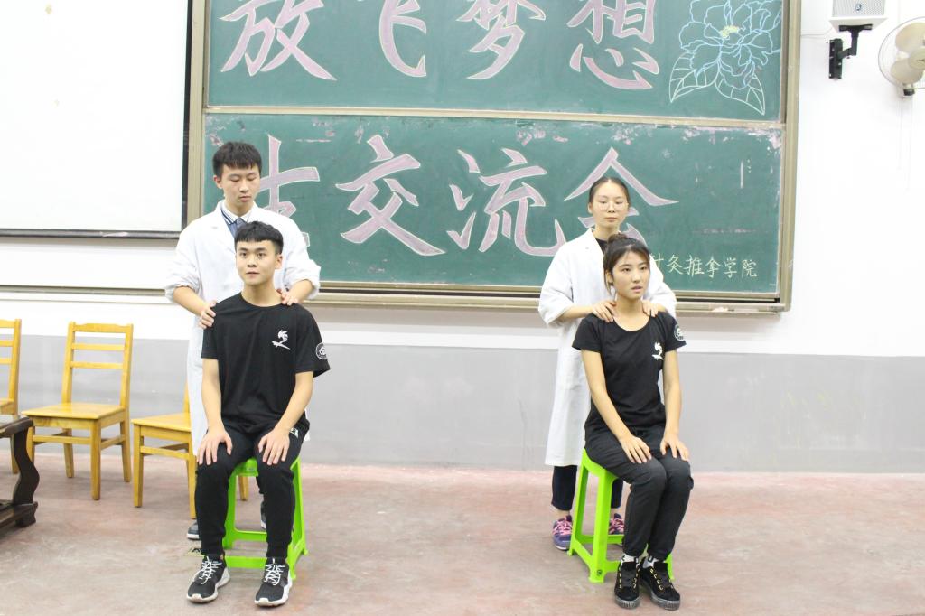 首先,新生代表刘浩然发言。他就一个月以来的大学生活发表了自己的感想并对未来生活提出自己的展望;随后,院社会实践部向全体成员展示推拿手法,使新生感受到了针灸推拿专业的魅力。大会期间,四位学姐学长就学习、生活、工作等多方面发表了自己的建议和看法,其中谢峥嵘学长提出多学习、多实践、多临床的“三多法”并对新生提出“做一个会针灸推拿的中医师”的期望,让新生受益颇多。随后的自由提问环节,新生们积极发言,同学们也更深层次的了解了中医文化并谨记传承传统中医的使命。