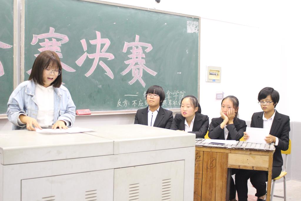 2017年11月3号下午五点一十,针灸推拿学院新生辩论赛决赛于2103教室举行。出席本次活动的嘉宾并担任评委的有王瑞、龙一豪和周诗婷。此外,还有第十二届分团委主席团、各部门部长出席本次活动。