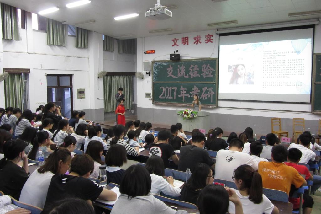 2017年5 月10 日晚19:00,湖南中医药大学针灸推拿学院以“交流经验,筑梦起航”为主题的考研交流会于含浦校区1506教室举行。莅临本次大会的嘉宾有针灸推拿学院学生科钟婷老师,特邀嘉宾有冯祥学长,李官洪学长,谭瑶学姐,杨雨学姐,第十一届分团委学生会主席团、各部门部长及部分其他同学也参加了本次大会。