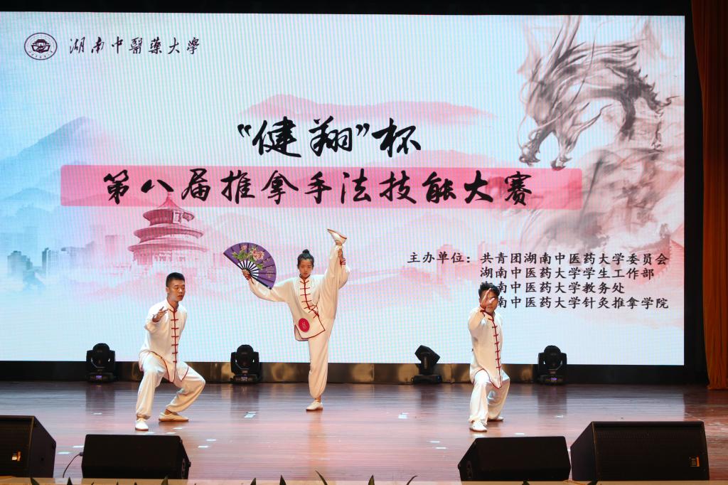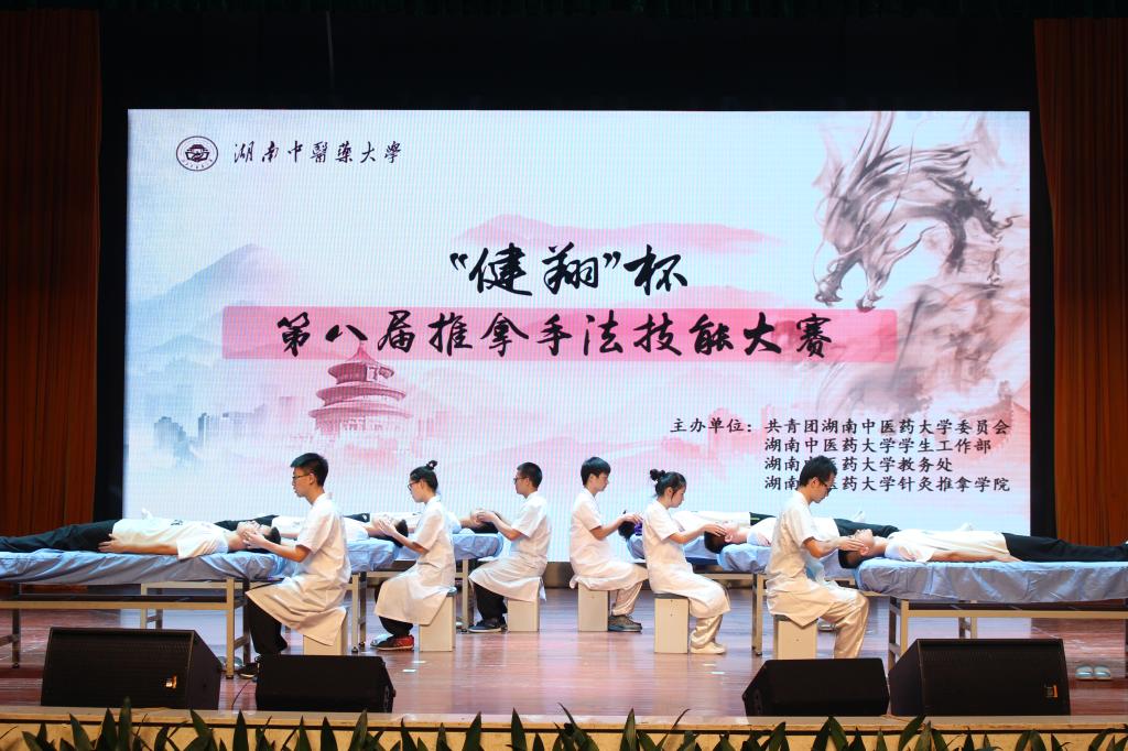 5月22日,湖南中医药大学针灸推拿学院第八届“健翔杯”推拿手法技能大赛于大学生活动中心隆重举行。莅临本次活动的嘉宾有湖南中医药大学副校长何清湖教授,广东佛山健翔医院龙翔宇院长、潘鑫辉执行院长、王仁副院长,湖南中医药高等专科学校王德瑜教授,湖南中医药大学研究生院阳仁达院长、学生工作部张湘明部长、科技处李江山处长、招生就业处曹一瑜副处长、教务处陈楚淘副处长、学生工作部方圆副部长,湖南中医药大学针灸推拿学院岳增辉院长、顾星副院长、推拿气功教研室彭亮主任。本次比赛由广东佛山健翔医院院长龙翔宇主任医师、湖南中医药高等专科学校王德瑜教授、湖南中医药大学李江山教授、湖南中医药大学陈楚淘副教授、湖南中医药大学彭亮副教授担任评委。