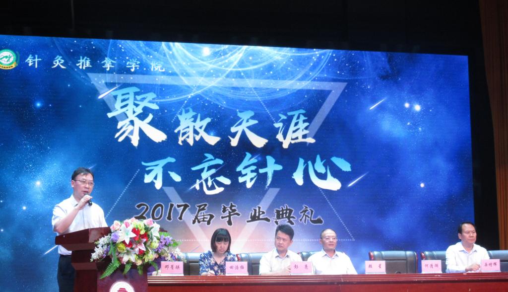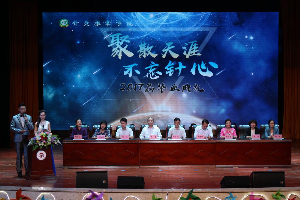 6月6日晚上7点,针灸推拿学院“聚散天涯·不忘针心”2017届毕业生毕业典礼暨毕业生晚会在湖南中医药大学含浦校区大学生活动中心隆重举行。湖南中医药大学何清湖副校长,针灸推拿学院岳增辉院长、顾星副院长,针灸推拿学院教研室及学生科老师们应邀出席本次晚会。所有毕业班级及各13、14、15、16级学生代表参与了此次晚会活动。
