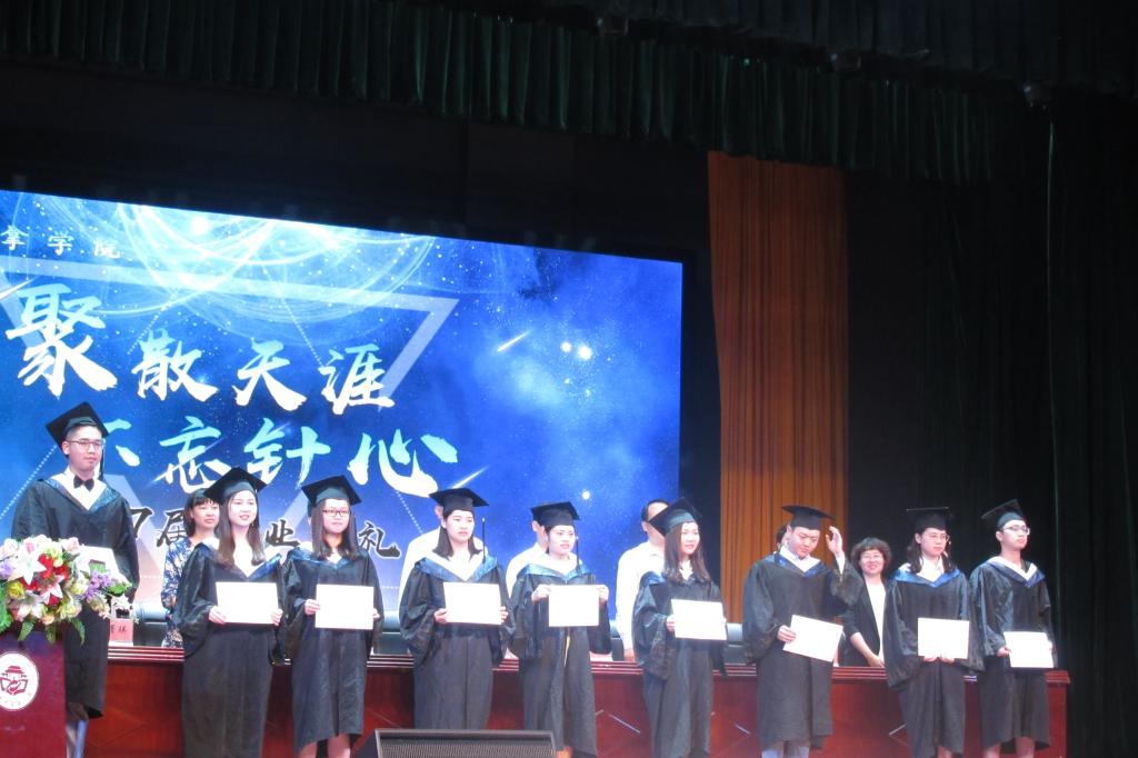 毕业典礼在全体师生吟唱国歌与校歌声中拉开帷幕。首先,何清湖副校长上台宣读《湖南省普通高等学校2017届优秀毕业生和自主创业毕业生的通告》,我院冯祥等九位同学被评为湖南省普通高校优秀毕业生,由何清湖副校长及岳增辉院长、顾星副院长、教研室谭洁、杨茜云、彭亮、邓菁英、田浩梅老师为他们颁奖。之后,何清湖副校长致辞,教师代表彭亮及学生代表冯祥同学依次上台发言。最后,岳增辉院长上台致辞。