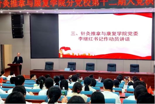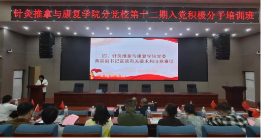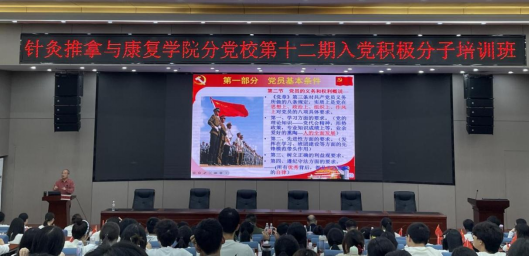 2025年10月29日19:00,针灸推拿与康复学院分党校第十二期入党积极分子培训班在含浦校区立德楼506教室顺利开班。学校党委委员、副校长刘富林教授,学院党委李继红书记、黄容副书记及学生管理科全体老师出席开班典礼。本次培训班共139名学员。