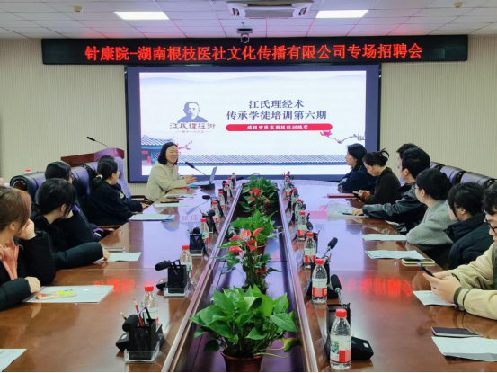 为落实教育部“访企拓岗”专项行动要求,拓宽毕业生就业渠道,精准对接中医药文化传播领域人才需求,3月19日上午10时,湖南中医药大学针灸推拿与康复学院特邀湖南根枝医社文化传播有限公司于学校第三教学楼十楼会议室举办专场招聘会。学院党委副书记黄容、学生科科长贺圆圆、毕业班老师及相关专业毕业生参与本次活动。